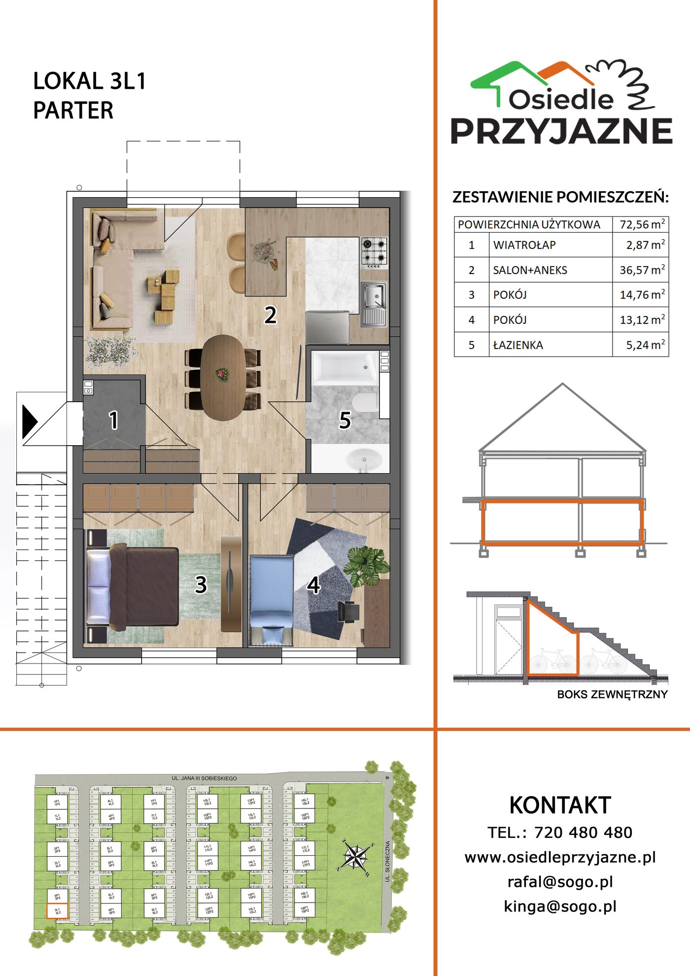 Metraż: 72,56 m2