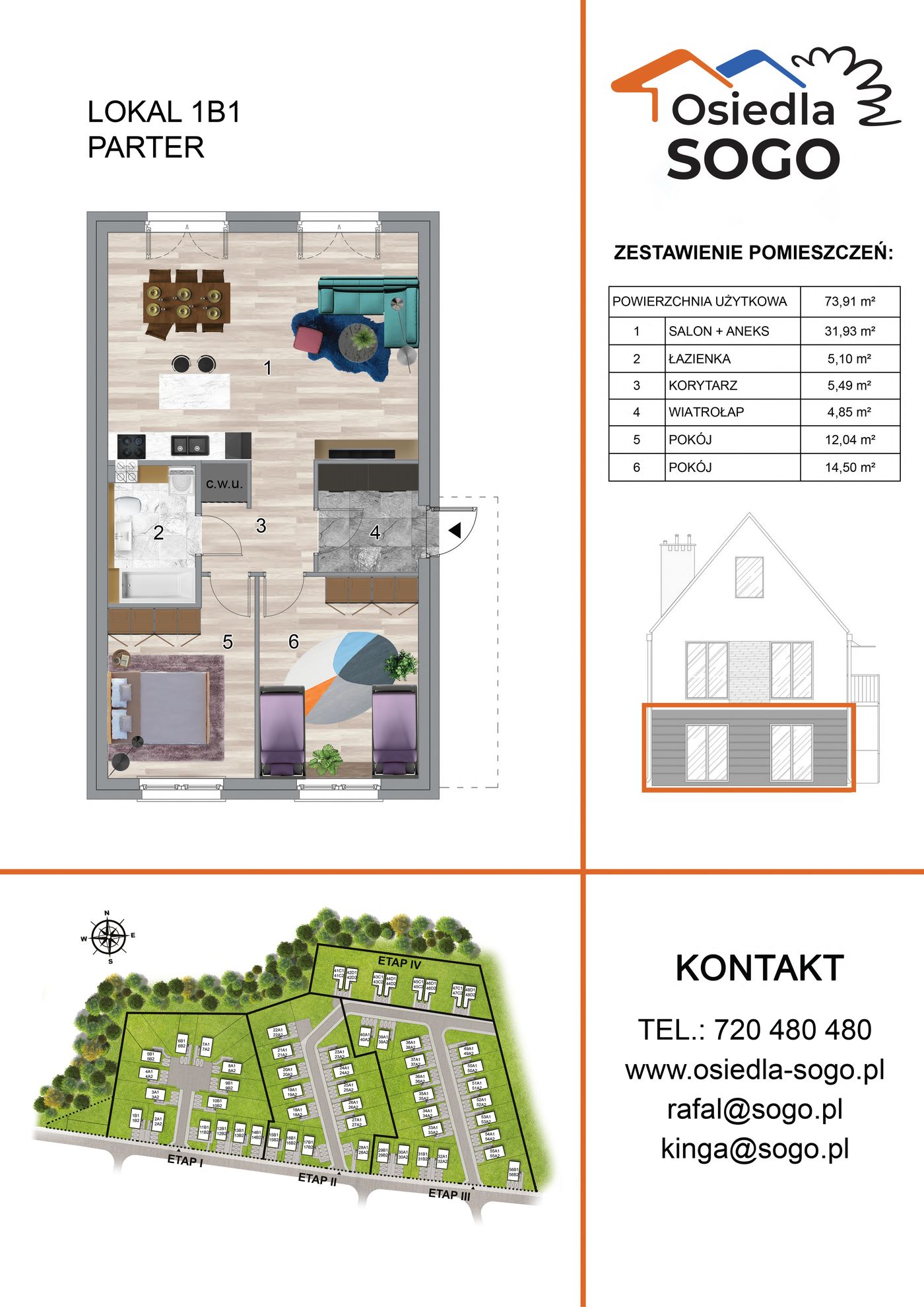 Rezerwacja | 73,91 m2 | Ogród 190,00 m2 | 3 | 0 | 2026-06-30 |